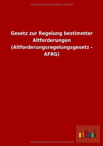Download Gesetz zur Regelung bestimmter Altforderungen (Altforderungsregelungsgesetz - AFRG) ... The Gesetz zur Regelung bestimmter Altforderungen (Altforderungsregelungsgesetz - AFRG) is the first official collection of such artwork. ... Read online or download eBook Gesetz zur Regelung bestimmter Altforderungen (Altforderungsregelungsgesetz - AFRG) in PDF, EPUB, ...